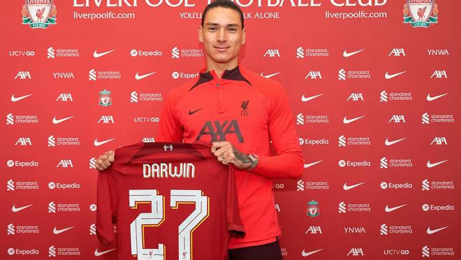 2022年夏,利物浦以总价8500万英镑,约1亿欧元从本菲卡签下努涅斯。